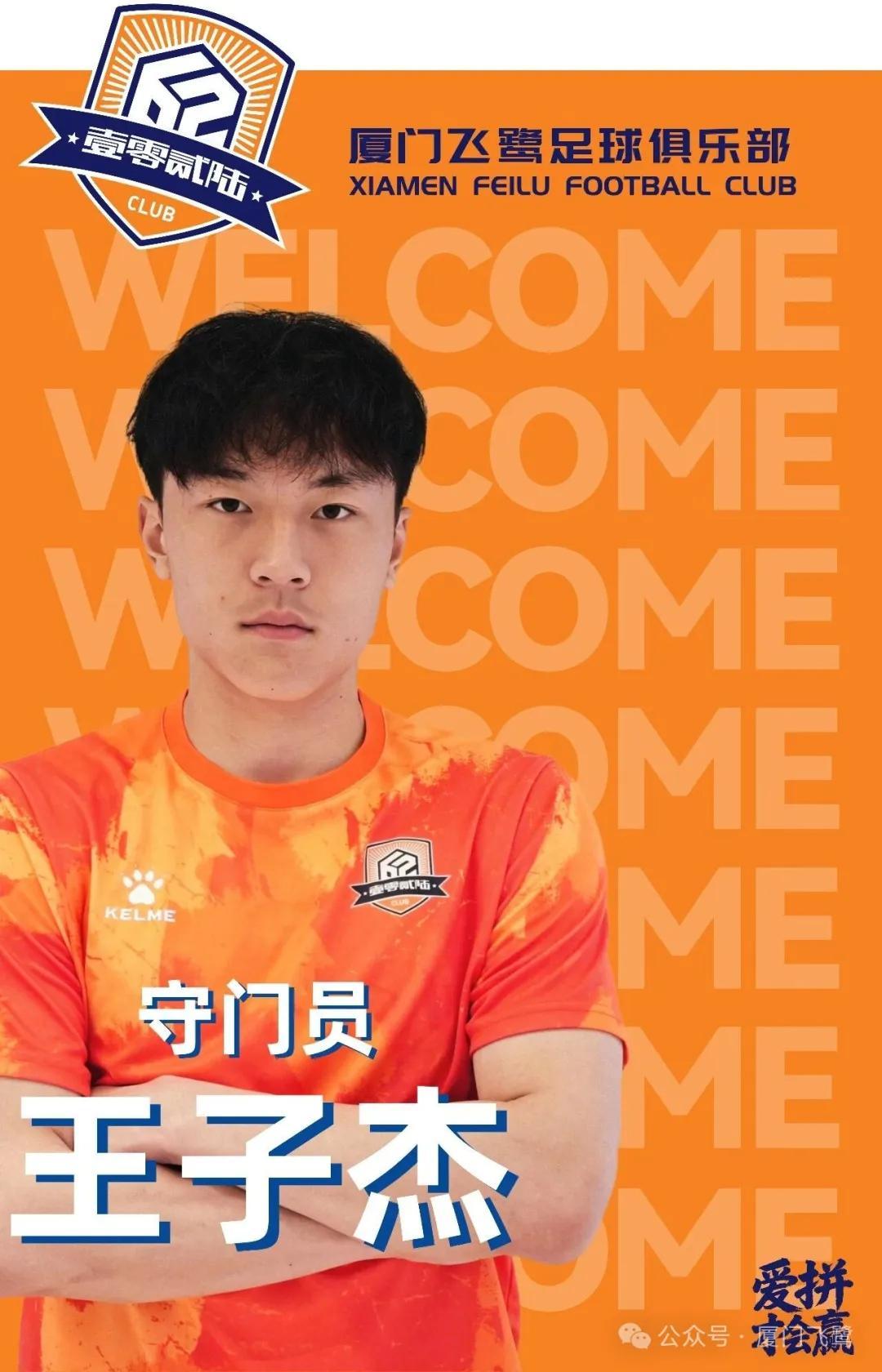 欢迎王子杰加盟厦门飞鹭足球俱乐部,期待他在新赛季稳定发挥,为球队筑起最后一道防线。