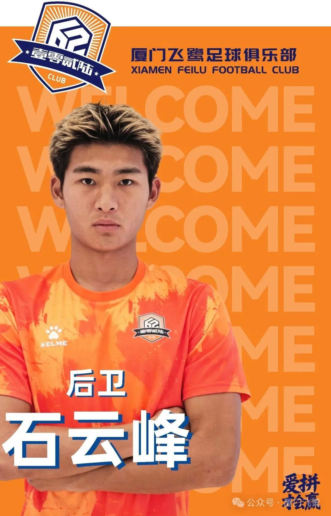 欢迎石云峰加盟厦门飞鹭足球俱乐部,期待他在新赛季展现出色表现,为球队筑起稳固防线。